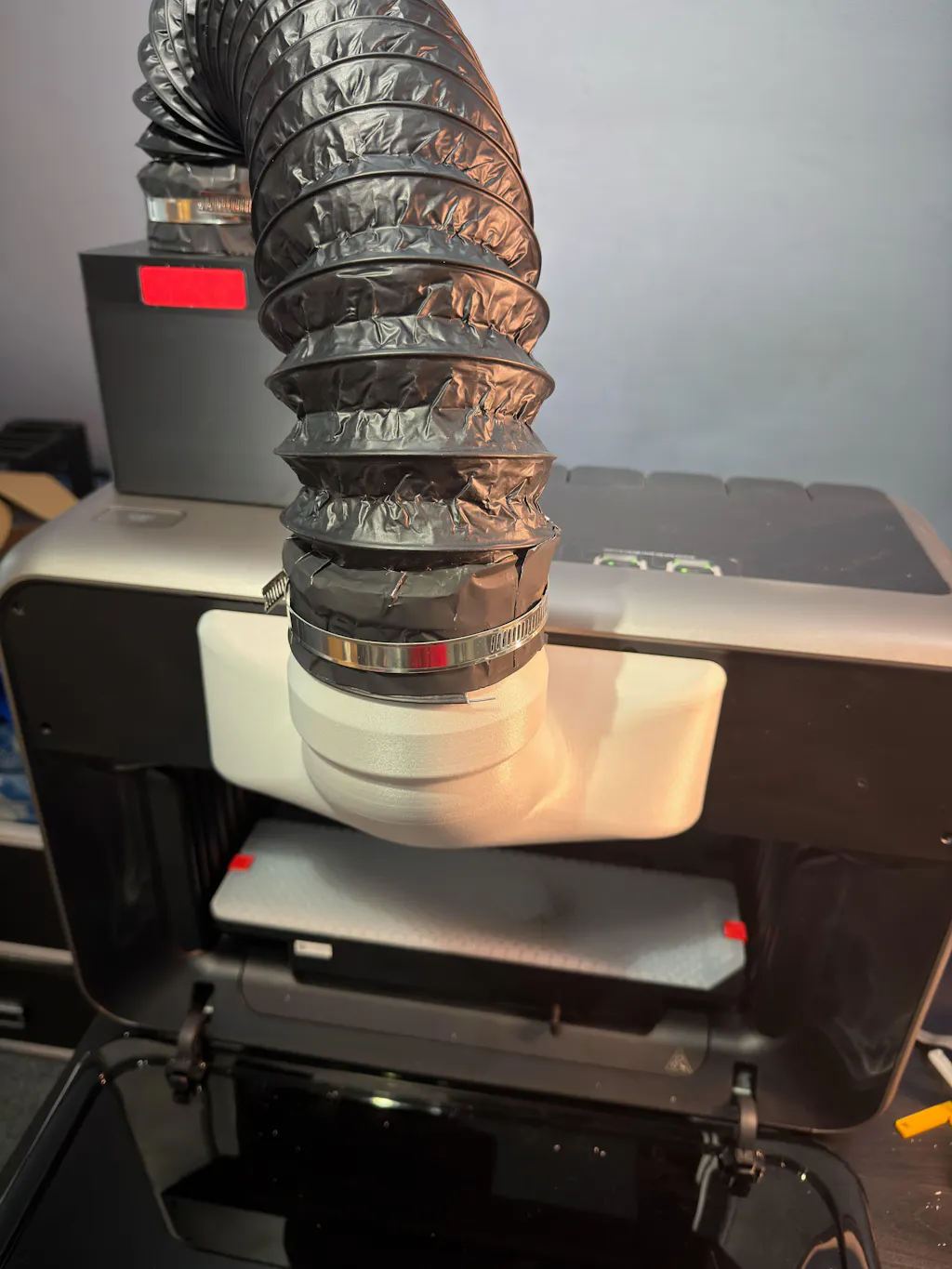 Designed for Bambu Lab P1S/X1C, V1 uses standard 100mm inner-diameter tubing, making it compatible with most enclosed printers when a matching exhaust adapter is available. We curate downloadable connector files by printer model, including Bambu Lab 3D Printer H2S/H2D, P2S; Prusa enclosure; Creality 3D Printer, Flashforge 3D Printer... (database is continuously updated). Click this Compatible Connectors List for details.