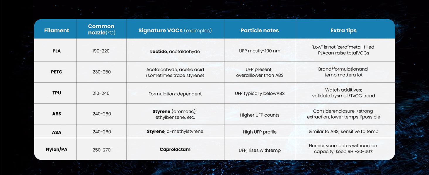 PLA / PETG: Targets ultrafine particle emissions.