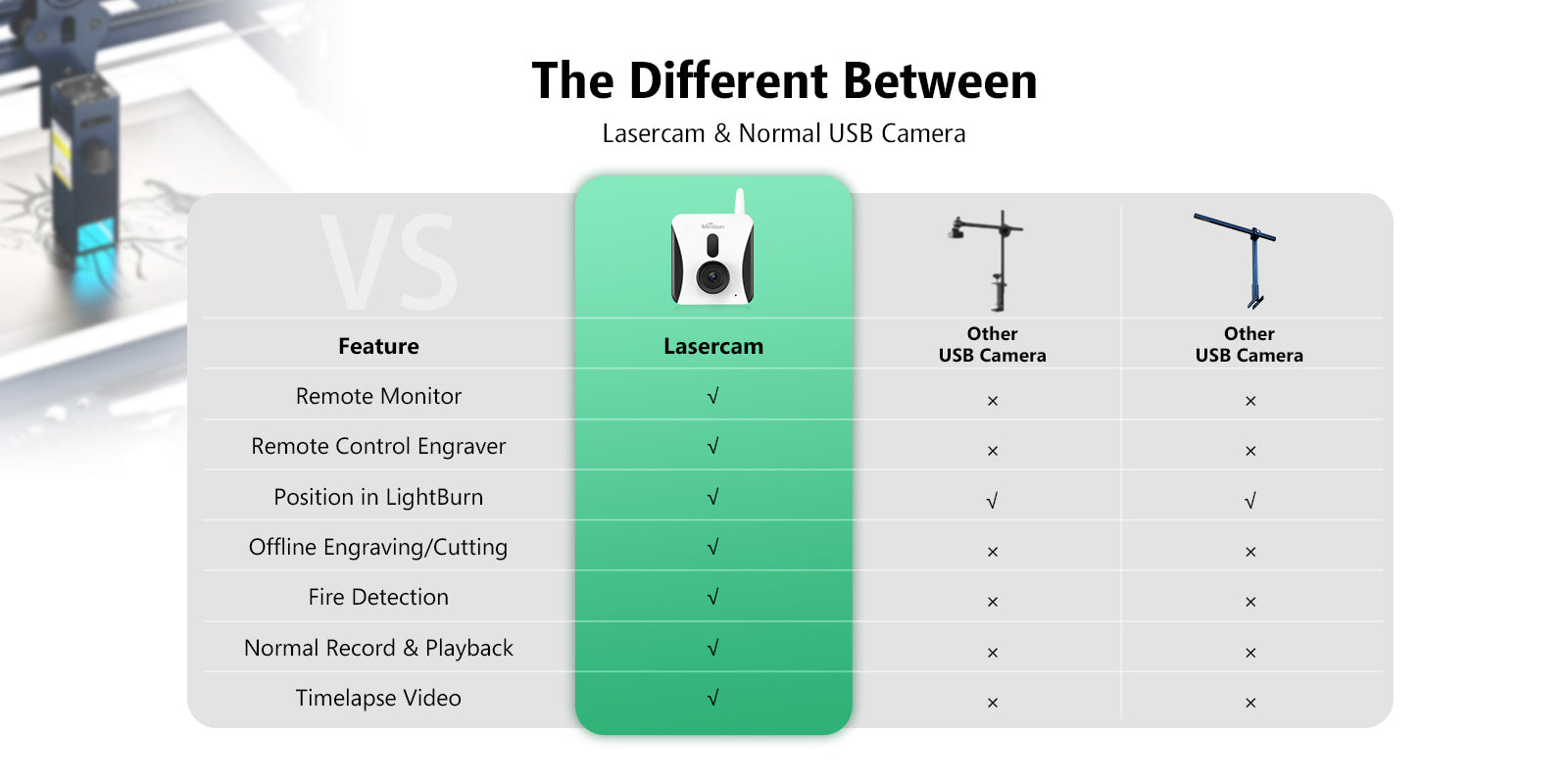 The Lasercam is specially designed for laser engraver/laser cutter, not just as a normal USB camera
