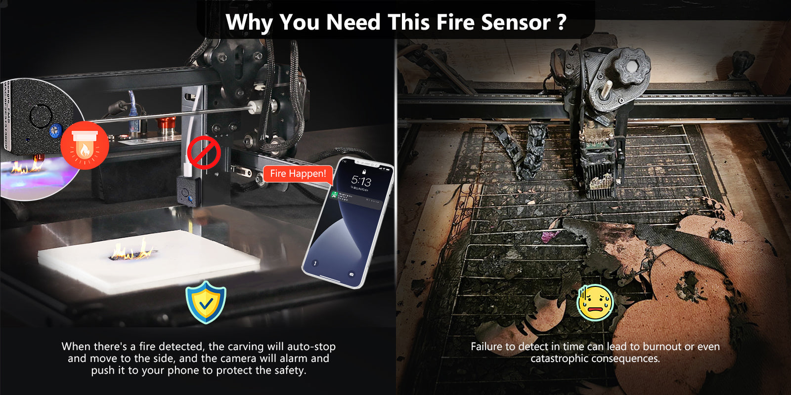 - Fire Detection to Alarm & Alert Message Push on App, Protect your laser engraver and your safety.