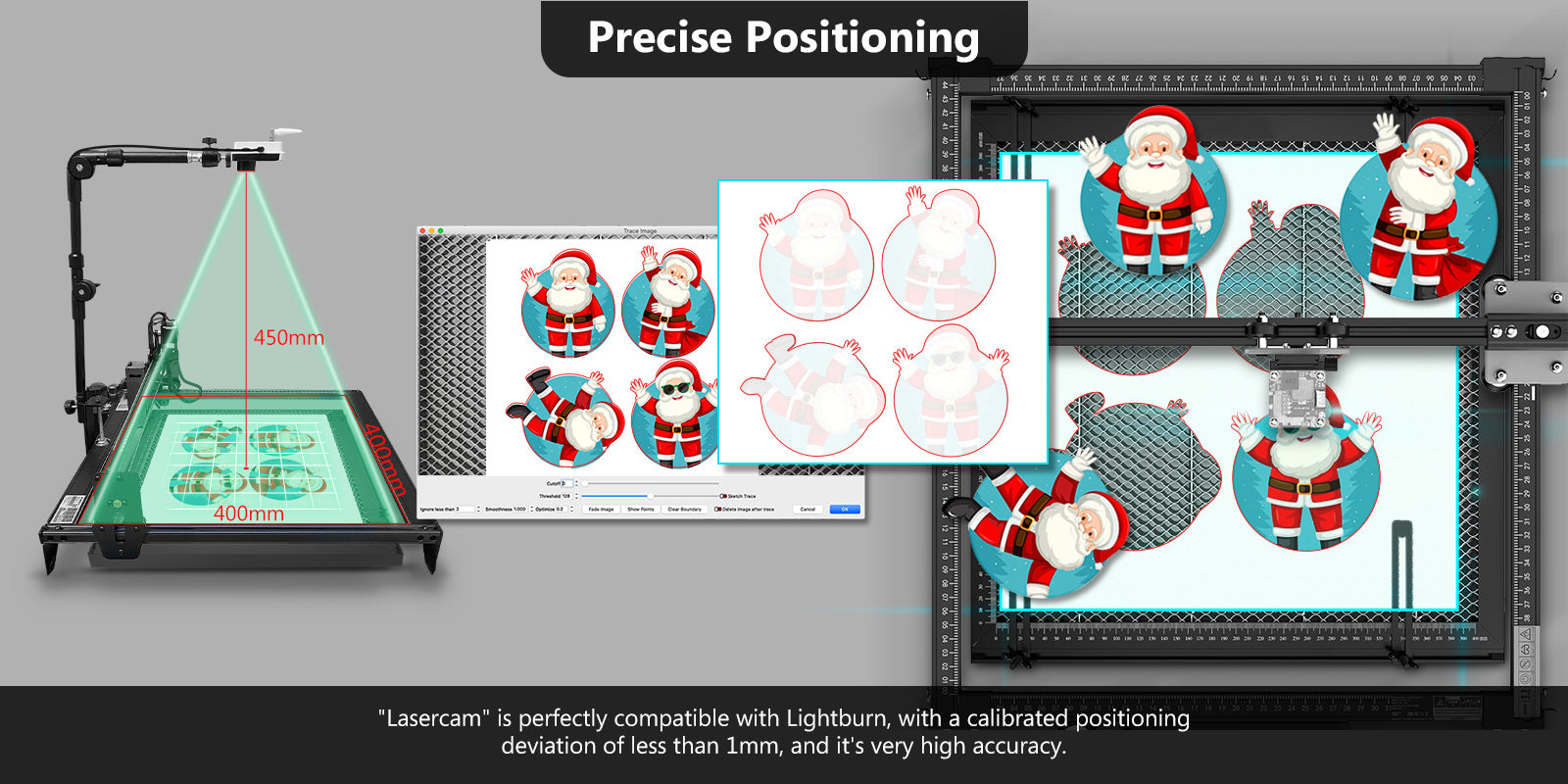 - Precisely positioning in Lightburn, trace image and batch engraving/cutting.